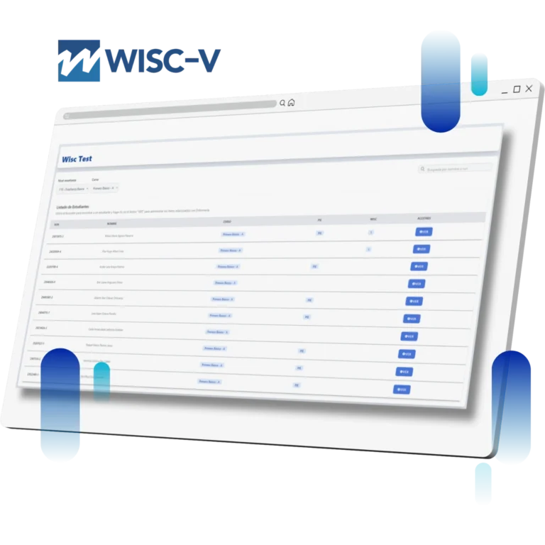 Educa+ incorpora el WISC (Wechsler Intelligence Scale for Children), una herramienta clave para evaluar el desarrollo cognitivo de los estudiantes. Con esta integración, los establecimientos pueden obtener información precisa sobre habilidades intelectuales, identificando fortalezas y áreas de apoyo para una educación más personalizada e inclusiva.